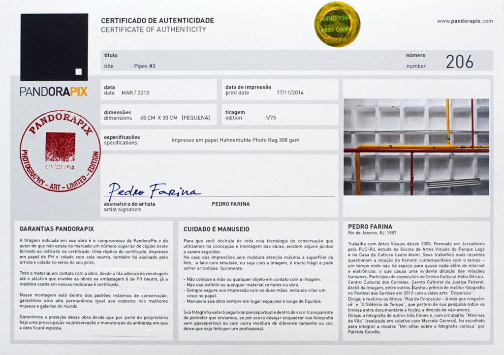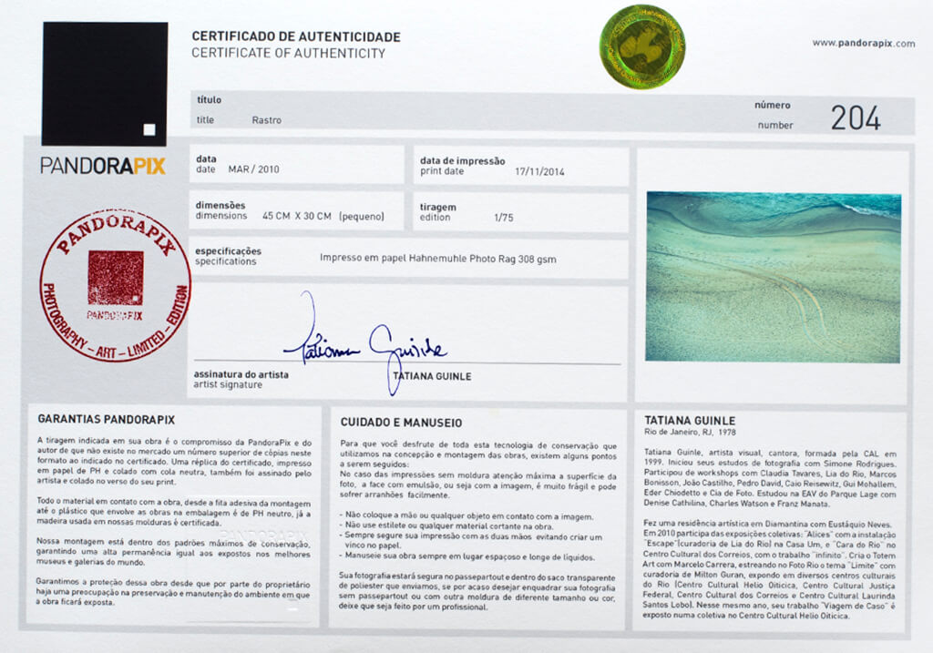exemplo de certificado de autenticidadeComo funciona o Certificado de Autenticidade na Impressão Fine Art na PandoraPix